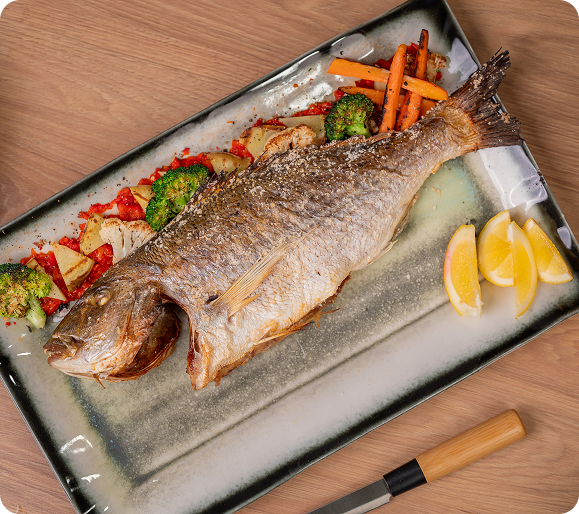 Όρθια στάση του ψαριού: Ψήνεται ομοιόμορφα, δεν ακουμπάει πουθενά, διατηρώντας τη φυσική του μορφή και τα υγρά του.